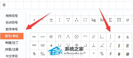 3. 在“数学/单位”符号下,就可以找到并输入“|”绝对值符号了。