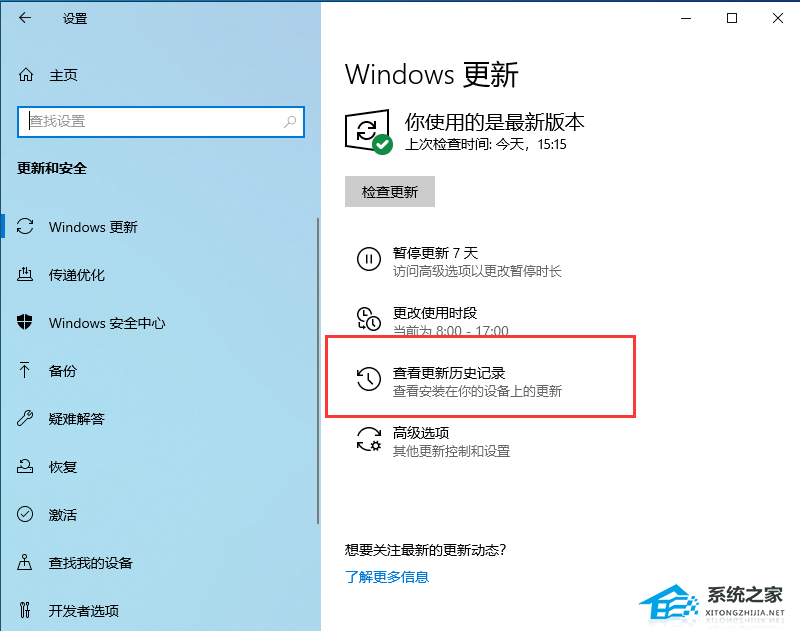 3. 在更新界面,点击右侧的查看更新历史记录。