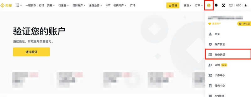 4、录币安账户,点击【用户中心】 - 【身份认证】。