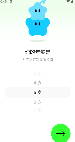 1、首先注册登录界面,填写宝宝的年龄和喜欢听的故事类型;