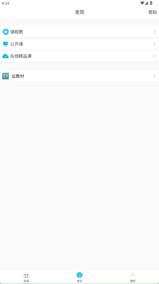 3、点击发现,提供课程圈、公开课、在线精品课、云教材服务。