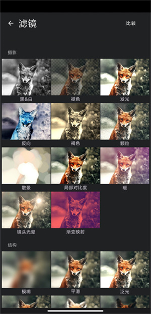 4、在此页面选择一个滤镜,即可设置出发光效果,例如选择镜头光晕,点击即可应用。