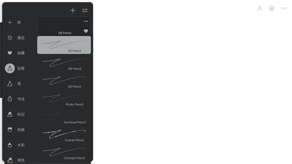 1、进入页面后了,在右侧,点击画笔,可以在这里选择笔刷,不管是铅笔还是书法绘画等等都可以。