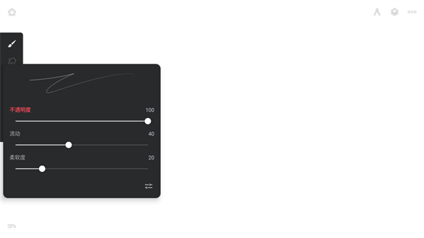3、点击圆圈,可以在这里调整不透明度和流动、柔软度等。