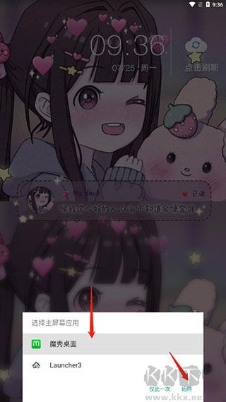3、选择魔秀桌面,然后点击下方的"始终",即可设置为默认永久。