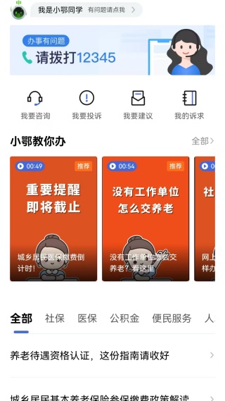 3、进入主页查看上面推送的服务与内容,点击进入服务指南搜索