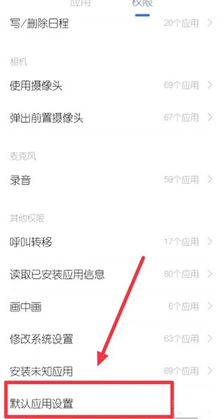 2、在更多设置里面,往下拉,找到默认应用设置,点击进入;