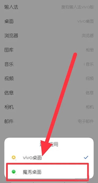 4、在桌面选项里面,选择魔秀桌面,设置为默认桌面即可!