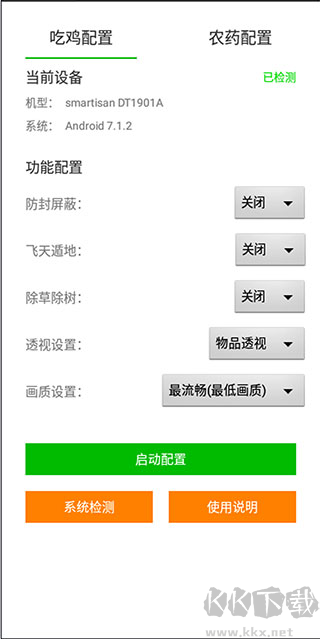 1、启动应用后进入"吃鸡配置"页,按需调整画质参数;