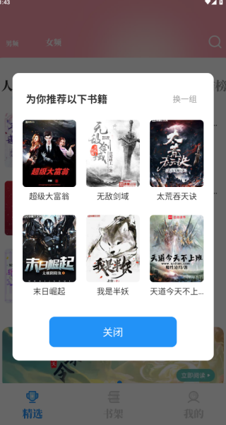 1、进入小说首页,会弹出你感兴趣的小说,点击一本进入阅读;