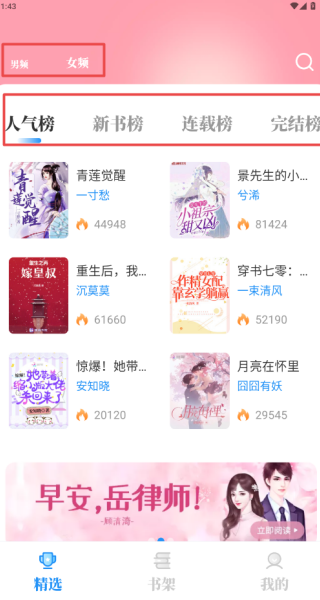 2、如果推荐栏里面没有自己喜欢的小说,还能在榜单里面查找;