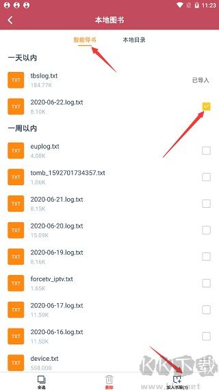 4、以智能导书为例,勾选需要导入的书籍,点击加入书架