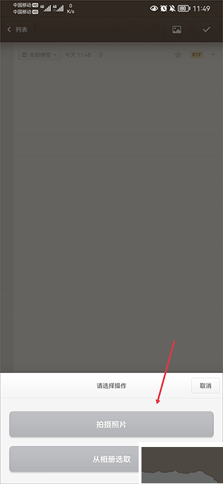 3、接着会弹出一个选项,你可以直接拍照,或者从手机相册里选一张现成的图片。