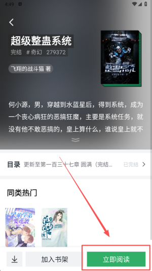 2、点击“立即阅读”按钮,系统将带您进入精彩的故事情节。