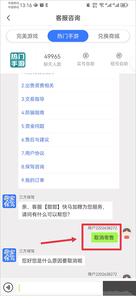 2、向客服发送取消寄售和取消原因后,等待客服为你取消就可以了