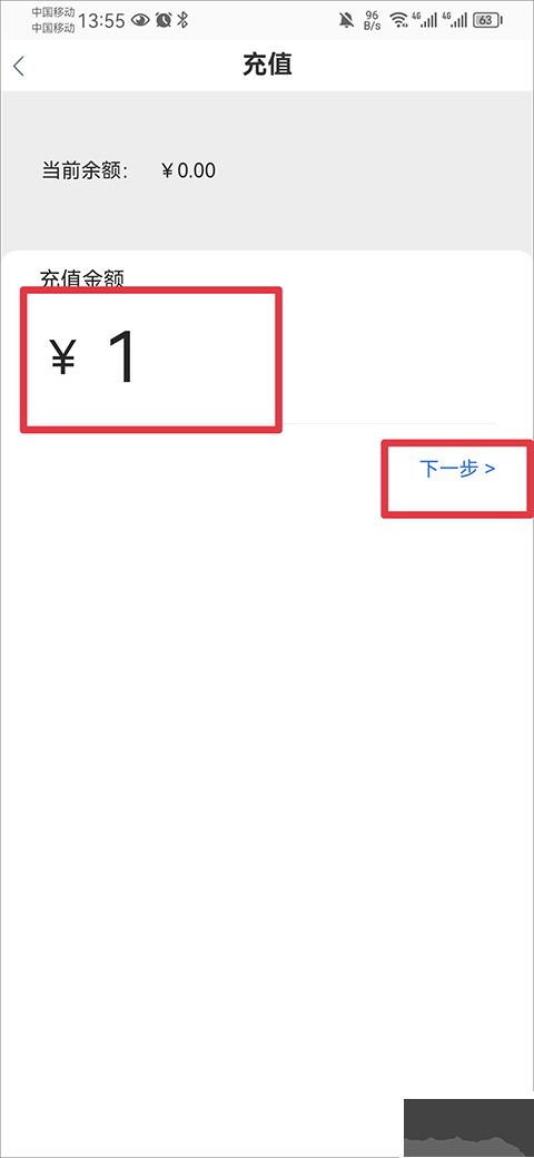 3、输入充值金额后点击下一步