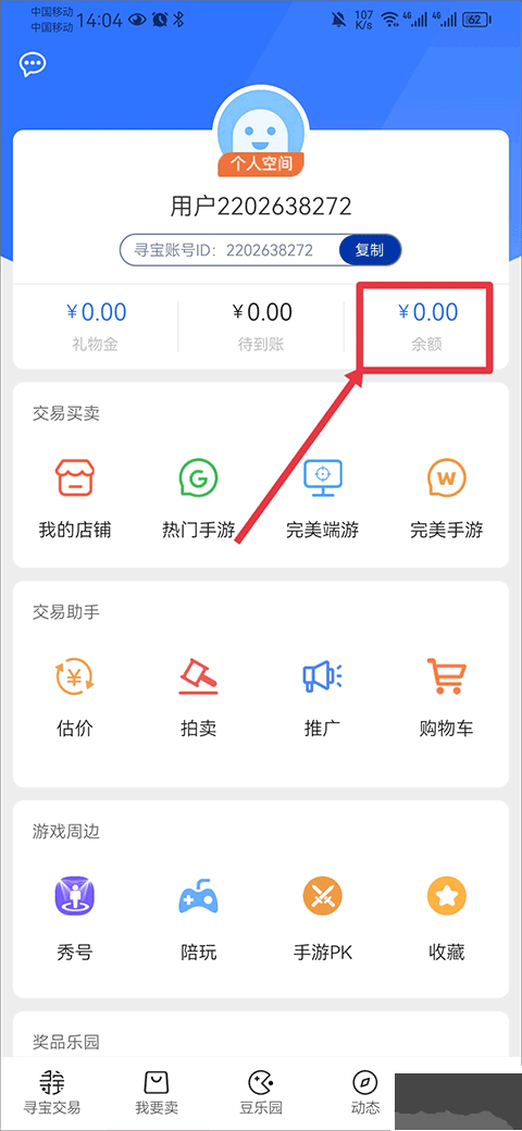 1、找到我的界面的余额,并且点击进入