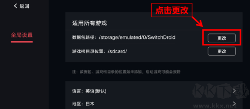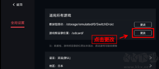 1、点击"更改"数据包路径,选取"SwitchDroid"文件夹并确认。