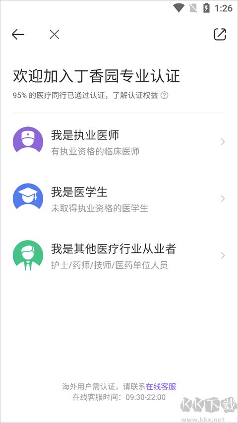3、在认证页面中选择一种身份进行认证