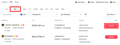 1. 如果要下卖单,请找到心仪的广告,然后点击出售按钮开始卖币流程。
