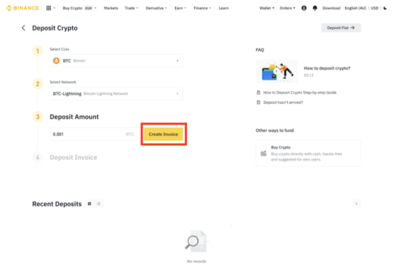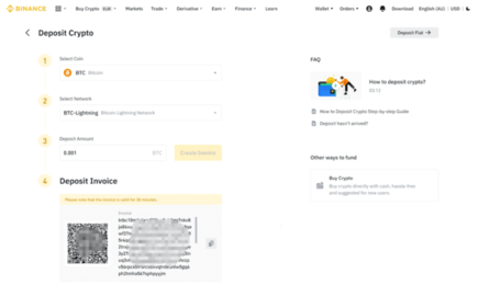 5.弹窗将显示发票信息。点击复制发票编号,将您的比特币充值发票复制并粘贴到您打算从中提取BTC的平台上的发票字段中。