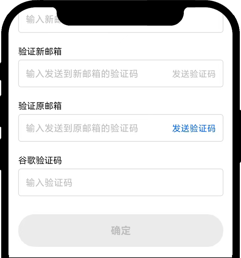 按要求输入新邮箱、新邮箱验证码、原邮箱验证码、谷歌验证码—确定—迁移账号;