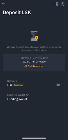 如要使用的网络处于维护状态,屏幕上将显示消息,告知用户系统正在进行维护。钱包维护期间,App端和官网均会显示下方的提现/充值暂停消息。