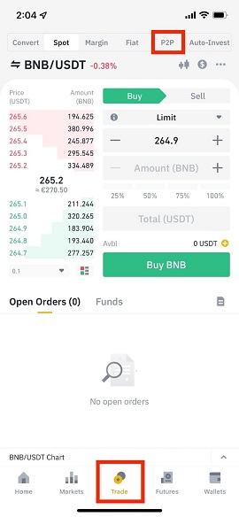 进入 C2C 交易页面:打开币安 App 并登录,有两种进入方式。