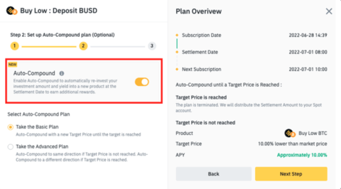 自动复投是一项新功能,可在结算日自动重新申购双币投资计划。