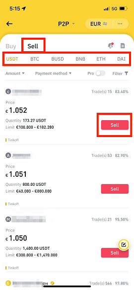 C2C 专区:点击卖出,选择你要卖的数字货币。页面会显示其他用户给出的各种收购价格,看到合适的价格,点击旁边的出售。