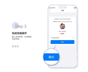 输入支付密码并完成充值: