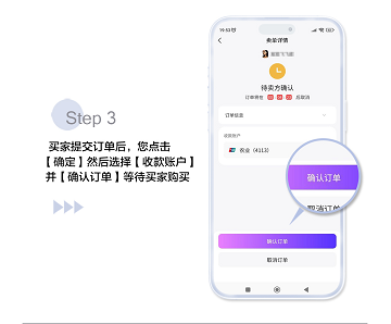 买家下单后,点击“确定”,选择你的收款账户。