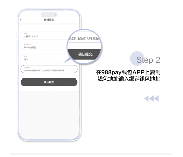 在988Pay钱包中,粘贴并确认绑定钱包地址。