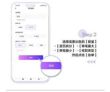 点击“挂单”,发布卖币信息。