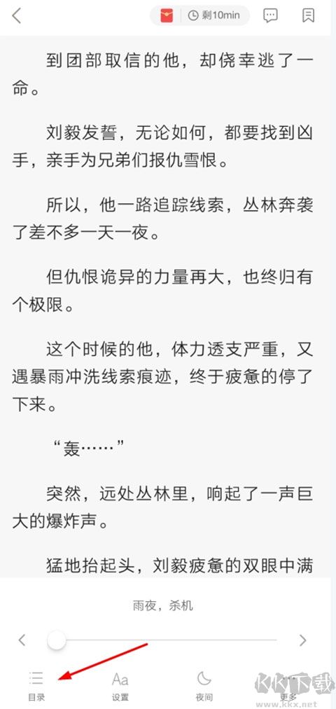 1、首先我们打开一本小说,然后点击屏幕中间唤出菜单栏,在左下角就可以看到目录功能了。