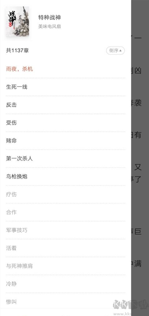 2、点击目录,就可以看到小说的所有章节了,支持倒叙和顺序的切换,可以快速切换章节。