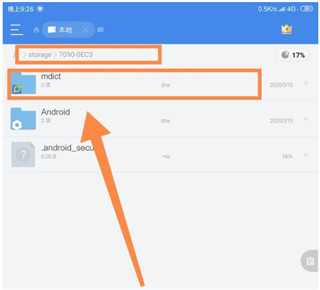 可以看出mdict的额外词库目录为:/storage/7090-0EC3/mdict