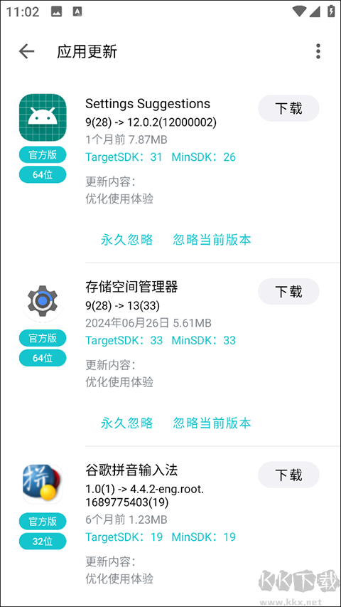 在"我的"页面开启"自动检查更新",软件会推送已安装应用的最新版本。