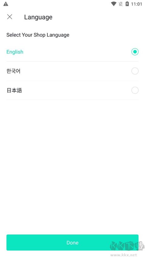 当前应用暂未开放中文界面,仅提供英文、韩文及日文三种语言选项。