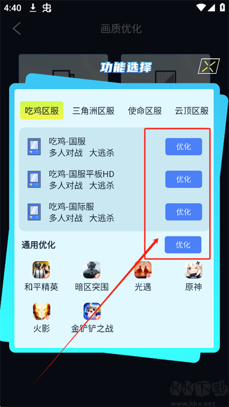 4、轻按"优化"按钮即可对所选游戏进行调整。