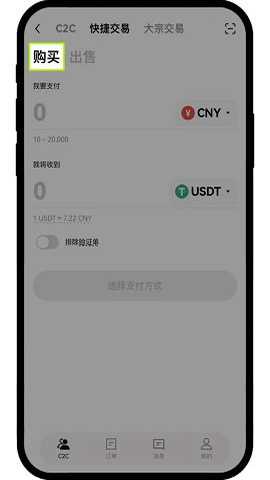 选择“快捷买币”选项。