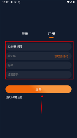 4、若没有账号,则需点击"注册",支持使用手机号或邮箱进行注册。