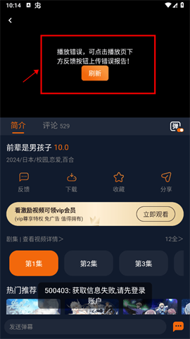 1、最近有用户反映,点击播放时会弹出500403:获取信息失败,请先登录账户的提示;