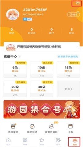 1、在"我的"页面里点击右上角的"设置"按钮;