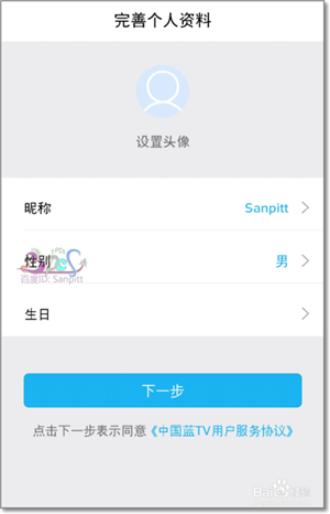 设置头像、昵称等基本信息,点击下一步。会提示输入手机号验证。
