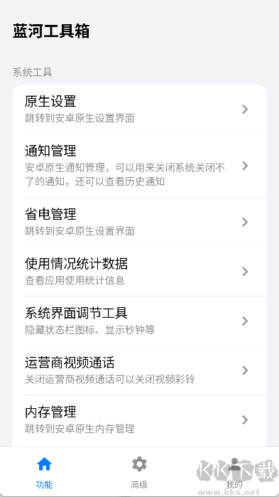 蓝河工具箱应用是一款专为安卓设备打造的系统工具集,支持对手机系统设置进行多项调整。适配机型范围广泛,涵盖OPPO、一加、小米等主流品牌,覆盖范围广!该工具主要在系统层面提供自定义功能,例如查看设备兼容表现与电池屏幕状态,据此优化设备整体性能。对于无法清除的系统通知,该工具可进行彻底移除处理!