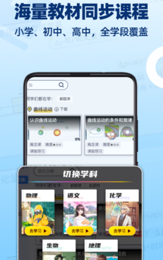 该平台已获得超一亿次下载,深受学生和家长信赖。课程内容覆盖小学、初中到高中全学科,采用趣味动画视频讲解知识点,帮助学生轻松理解难点。所有课程均与教材同步,结合讲授与练习,强化学习效果。尤其适合课堂上未能完全掌握知识的学生进行课后复习,系统化提升整体学习成绩。
