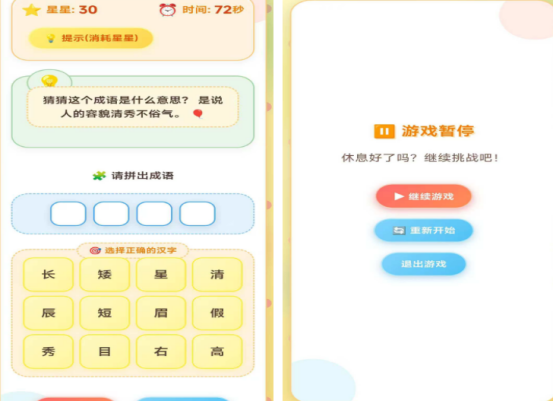 全新以成语这种知识所打造的智力手游,既可让大家了解全新的玩法,也是比较有趣的,需要在每次闯关的时候根据时间限制,输入正确的成语以后,就能完成闯关。除了有一些关卡内容,需要你在很长的文字当中将其缩短,填入正确的成语,就能完成任务,还有一些是对成语的描述通过仔细的了解,然后填写以后来解答。