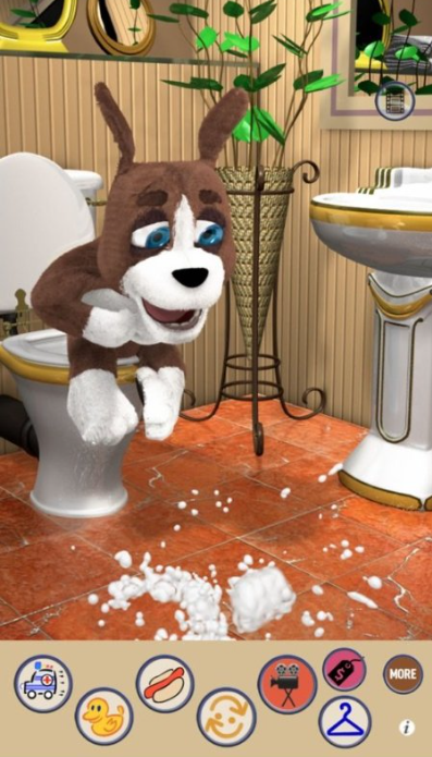 这款游戏里,大家将可以拥有一只可爱的小狗狗,你可以给它洗澡、喂它吃饭、和它做游戏等,它总是能做出各种滑稽动作来博你开心。游戏里,你每说一句话,它就会跟着你的腔调说同样的话,准令你大感惊奇,内心欢喜。游戏为了方便你操作,设计了数十个按键,只要你轻轻一点,就能和狗狗做出许多截然不同的互动。