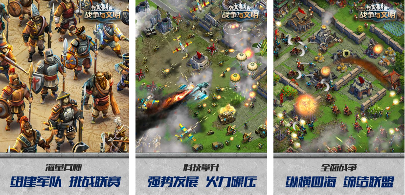 《战争与文明》将国家的崛起和帝国时代等多款游戏的核心玩法融合在一起,是一个拥有多元化玩法的策略+战争手游。虽然是欧美写实画风,但玩法却完全符合玩家的需求,你将化身为领主,通过招兵买马训练军队的方式来战斗。游戏拥有完整的时间线,从最早的青铜时代到现在的科技时代都会依次出现,而流畅的新手教程即使是新手小白也能在5分钟内了解到其核心玩法。